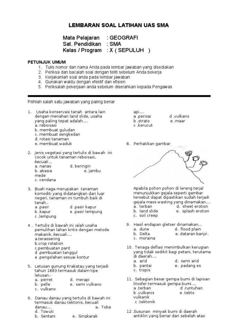 Melanjutkan contoh soal geografi kelas xii semester 1 beserta jawabannya bagian pertama, yang berisikan soal no.